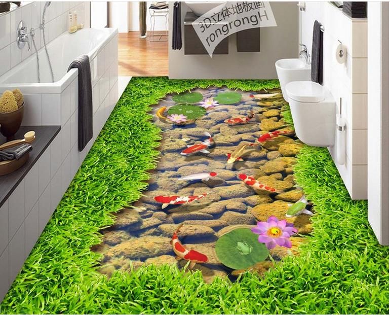 طبيعة مشهد ورق الحائط العشب تيار تحتمل كارب اللوتس 3d ستيريو اللوحة الكلمة بلاط الأرضيات صورة خلفية ورق الجدران الطبيعة 2021 من wallpaper2018 68 61ر س موبايل dhgate